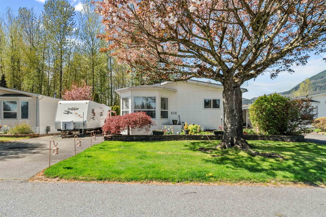 Welcome to OASIS COUNTRY ESTATES—a premier gated community nestled among mountains and farmland. This IMMACULATE, SPACIOUS 3 bed, 2 bath home on the adult side of the park, offers nearly 1500 sq ft of bright, open living. HUGE KITCHEN with PANTRY and eating area with sunny BAY WINDOW, large ensuite with NEW JETTED SOAKER TUB, and many updates including flooring, paint, trim, vanities, toilets, kitchen countertops, backsplash, fixtures, lights, appliances & NEW HEAT PUMP! The LOW-MAINTENANCE LOT backs onto serene farmland and features a PRIVATE SUNDECK, detached SHOP, and parking for 4, or PARK YOUR RV and still have room for 2 vehicles! PET FRIENDLY! and minutes from skiing, golf, and lakes! Reasonable pad rent of just $497/month! OPEN HOUSE THIS SUNDAY 1-3PM