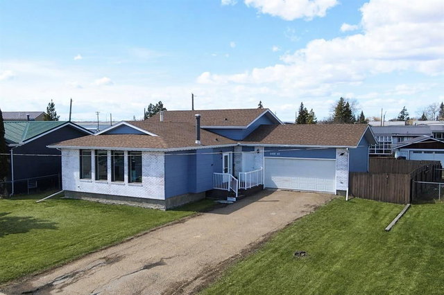 Situated on a large, fully fenced lot backing onto a lane and located across from the hospital in Mayerthorpe—this bright, airy home offers great space and plenty of potential.