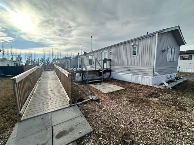 Lovely starter home to break into home ownership!! The home offers 3 bedrooms and two 4pc baths, with an addition mudroom entrance. A spacious open living area with a south-exposure window pouring natural light into the space. The Kitchen offers numerous cabinet storage options. Laundry is located in the hall just adjacent to the mudroom entrance en-route to the primary bedroom. Outside the yard space features a large 2-tier deck space, handicap ramp access and numerous gardening plots for the green thumb in the family. Exterior storage is provided by a metal frame shed 7'X10' and a wood frame garden shed 10'X10', alley access and plenty of room to add both a garage space if desired and fencing for privacy and security. Updates include newer asphalt shingles 2017, and a more recent high-efficiency furnace, & on demand tankless-water heater. Located on the west side of town overlooking a farmer's field with no neighbours behind. Great location and great value to make home ownership a reality.