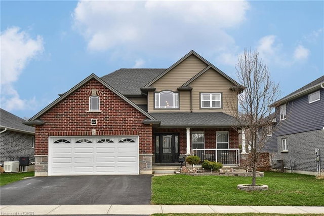 Welcome to 82 Curtis St., nestled in the charming village of Innerkip. Built by Hunt Homes, the sought-after “Waterloo” model offers an exceptional blend of space, style, and functionality with 4 bedrooms, 4 bathrooms, and a double car garage with Insulated garage door. Step inside to a bright and inviting two-storey foyer, featuring neutral décor, gleaming hardwood floors, and elegant tile. The open-concept main floor is perfect for both everyday living and entertaining, showcasing a spacious great room with a cozy gas fireplace and a gourmet eat-in kitchen complete with granite countertops, a breakfast bar, pantry, and sun-filled dining area. Sliding doors lead to a private backyard with a deck, gazebo, garden shed, and fully fenced yard—ideal for relaxing or hosting gatherings. The main level also includes a versatile formal dining room or living room, a convenient 2-piece bath, and a functional mudroom. Upstairs, the generous primary suite features a walk-in closet, private ensuite, and its own fireplace for added comfort. Three additional well-sized bedrooms, a full 4-piece bathroom, and a second-floor laundry complete this level. The fully finished basement expands your living space with a large recreation room, additional bathroom, workshop, storage, and oversized egress windows. Move-in ready, this home is located in a quiet, family-friendly neighbourhood with easy access to everyday amenities and major highways (401/403).