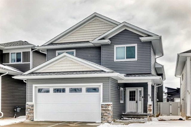 Welcome to this beautifully maintained 2022-built home offering modern design, quality finishes, and exceptional value. Showcasing a bright open-concept layout, the main floor features a spacious living room with a coffered ceiling, textured detail, large windows, durable laminate plank flooring, and a stylish gas fireplace.