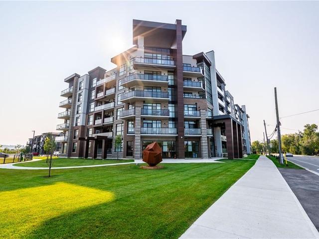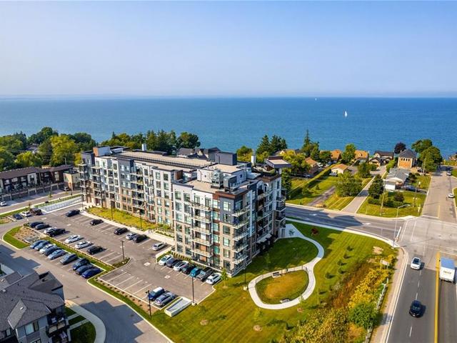 Welcome to Unit 321 at 600 North Service Rd, perfectly located just steps from Lake Ontario in the highly desirable Community Beach neighbourhood of Stoney Creek. This stylish 1-bed, 1-bath condo in the CoMo Condominium Building, built by Desantis Homes, features high ceilings, an O/C layout, and chic finishes throughout. The space is enhanced by luxury vinyl flooring lending an upscale touch to this already impressive space, large windows that flood the unit with natural light, and a sleek white kitchen. The modern kitch. is equipped with S/S appliances, quartz countertops, and a tiled backsplash all overlooking the living area. The unit includes in-suite laundry with an upgraded LG Electronics Ventless Front Load WashTower Laundry Centre and a primary bedrm with a spacious walk-in closet with a custom organization system, offering both convenience and sophistication. The luxurious bathroom features quartz countertops and a full-size tiled shower with frameless glass doors.Additional building amenities include a rooftop terrace with stunning lake views offering seating, BBQ's, lounging and gardening perfect for a green thumb. The condo building also has a media room, party room, a pet grooming spa, and an on-site dog park—perfect for pet lovers.This unbeatable location is ideal for commuters, with quick access to the QEW. A short drive to Niagara region to visit wineries and restaurants. You’re just a short drive from local shops, dining, and parks that Hamilton offers