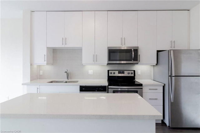 Highly UPGRADED 1 bedroom 1 bath condo in Kitchener’s trendy Boutique Style Midtown Lofts! This unit is bright and spacious with floor to ceiling 9 foot windows throughout which allows for tons of natural light. The large and functionable kitchen features quartz countertops, breakfast island, backsplash and stainless steel appliances. A spacious living room with access to the private balcony offers incredible views of the city. An over-sized bedroom with walk-in closet and a 4 piece bath with quartz countertops complete this unit! Carpet free with porcelain tile and laminate flooring throughout and convenient in-suite laundry. This unit comes with 1 underground parking spot and one storage unit. Also you get full use of the building amenities including a fitness center, lounge area and a professionally landscaped outdoor terrace with BBQ's. Prime location and just steps to the tech community such as Tannery, Google, Vidyard, Sunlife, School of Pharmacy, LRT, shopping, restaurants, café’s, Victoria Park and so much more! Available IMMEDIATELY