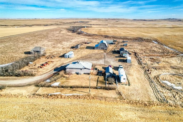 Looking for that larger acreage?? check out this one with 19 acres, older home, and a decent barn. Barn roof has been tinned. The home is nestled in and sheltered from weather by lilacs, imagine the aroma when they are in bloom. Home has a good sized eat in kitchen and large living room, two bedrooms on main floor and a craft room that could be third bedroom in basement. Some corrals and fencing in place, bring your horses and move in. Currently water comes from well, Municipal water is available at the road. Included are several pieces of equipment including 3 older tractors, a haybine, , baler, bale elevator and rake. all equipment has been used in last few years but is offered as is. Both sea cans 8x40 and 8x20 are included as well as the red fifth wheel trailer. Updates include new shingles 2022 on house quonset and workshop, Soffits, fascia, and eaves troughing 2022, House doors and windows and siding 2022, HWT 2025 Furnace 2023.