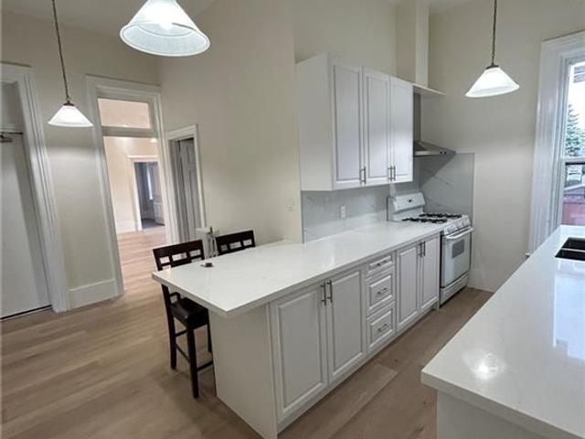 Nestled on a serene and picturesque tree-lined street, this remarkable 2 -bedroom rental located at 64 Blake Street Unit 3 Hamilton, is a place you'll be proud to call home. Meticulously renovated, it boasts an array of modern amenities that enhance daily living. The kitchen showcases elegant stone countertops and a gas stove, complemented by a convenient dishwasher for effortless meal prep and cleanup. Luxury laminate flooring graces the spacious living areas, exuding both style and comfort. The stunning 20-foot ceilings create an expansive and airy atmosphere, while an abundance of pot lights illuminates the space with a warm and inviting glow. This unit is exceptionally spacious, with 2 generous bedrooms that are perfect for someone looking to create a home office or gym space, allowing for versatile living arrangements to suit your lifestyle. In-suite laundry facilities add to the convenience, allowing for effortless chores. Set within a beautiful 6-plex property, this rental offers a sense of community and tranquility, with parking available for added ease. Step into this simply stunning abode, where every detail has been carefully considered to create a comfortable and welcoming living space. This unit is plus hydro and gas for stove.