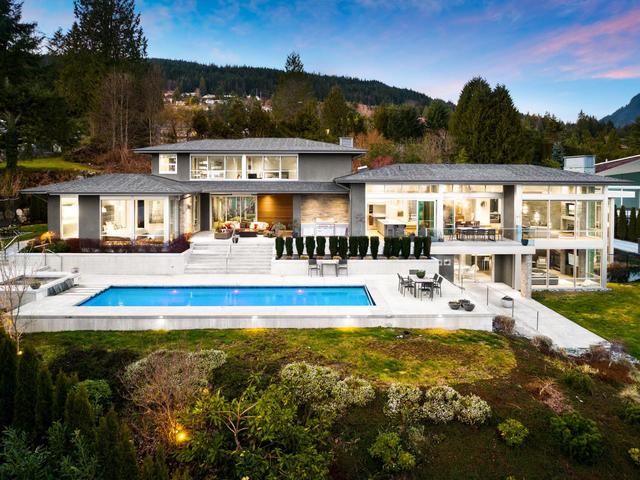 West Coast Contemporary at its finest. A UNIQUE family home that is BOLD, yet unassuming, connected by nature, blending the indoors & outdoors seamlessly. This STUNNING, custom-built design was curated by Craig Chevalier Designs, constructed by boutique firm Oksfeldt Developments w/millwork & cabinetry by Van Arbour Design. Private 0.63 acre lot, w/southern panoramic views from forest to mountains & city. With over height ceilings, 7,355 sqft sanctuary has every amenity you desire & allows for the lifestyle you deserve. 5 bedrooms(4 ensuite), 2 offices, 7 bathrooms, gym, studio/flex space, pool, hot tub, fire table, 3 car attached garage, outdoor built-in BBQ, many decks/patios, & sport court. Details abound, all automated by the Control4 system. ***Showings by appointment.